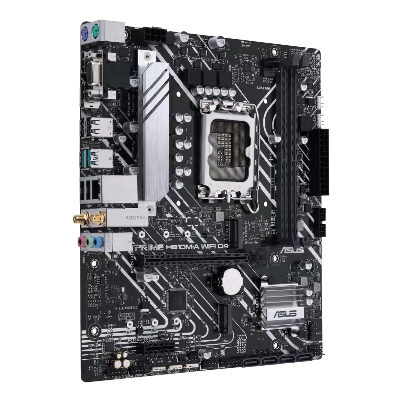 Placa-mãe Intel ® H610 (LGA 1700) mic-ATX com DDR4, PCIe 4.0, dois slots M.2, Intel ® 1 Gb Ethernet, WIFI 5, DisplayPort, HDMI ® , D-Sub, portas USB 3.2 Gen 2, SATA 6 Gbps , cabeçalhos endereçáveis Gen 2 e Arua Sync