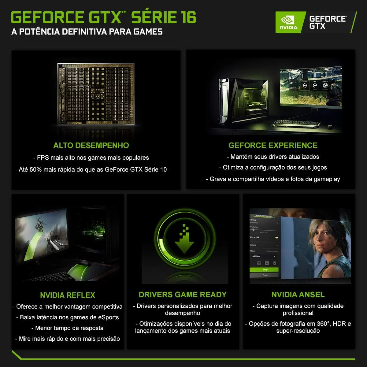 Apresentando execução simultânea de operações de ponto flutuante e inteiro, tecnologia de sombreamento adaptável e uma nova arquitetura de memória unificada com o dobro do cache de seu predecessor, os shaders Turing permitem aumentos incríveis de desempenho nos jogos dehoje. Obtenha 1,4X de eficiência energética em relação à geração anterior para uma experiência de jogo mais rápida, mais fria e mais silenciosa que aproveita as características gráficas avançadas da Turing.